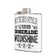 Well made flask, a little better than I had expected. Flask came in clear plastic box which gave it a nice presentation when I took it out of the zazzle packaging. Image is not printed on flask but on sticker. Don't know how this will hold up I haven't used it yet. This would make a Great gift! I plan to purchase more for friends! Cheers. I thought a little brighter than computer. Very crisp, writing wasn't