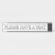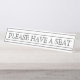 This classic design features the message "PLEASE HAVE A SEAT". This could be used in a waiting room to inform customers, patients or visitors that they will be helped shortly, and that they should take a seat in the meantime.