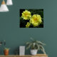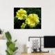 This poster is decorated with three lovely blossoms of an old fashioned golden yellow rose set against a background of green. The heavenly scent perfumes the garden.