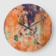 Old floral wallpaper, grunge vignette. large clock