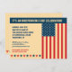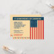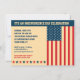 This invitation shows the US Flag in a different way by hanging vertically from the blue banner on top with the field of stars hanging to the left all against a modern cream coloured background. A rich blue banner displays the Independence Day message with all text printing to the left of the flag. A row of stars in red and blue finish off the invitation. Great for a bbq, pool party or whatever July 4th may bring. Available with matching products.