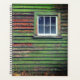 This planner has a picture of a window and a house with old green paint on it.