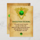 Elegant ,unique gold Celtic heart jewel with an emerald gem stone and shamrock inset with an ancient irish prayer inside for Saint Paddy's Day (,St. Patty ). Antique classic brown parchment effects and very accurated design,3D modelling and rendering by Bulgan Lumini (c).Part from series Hyper Talismans. .An elegant and classic design with an old parchment.