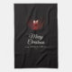 Old Lantern Light Merry Christmas Script Family kitchen towel. Old rustic light lantern in the festive holiday mood with white script. Add your family name and year.