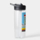 The bottle looks even better in real life. The ice cubes I put in lasts all day! I have my bottle with me all the time. It's summer and having something cold to drink feels amazing. With this bottle I always have something super cold. I have only tried the hot drink once and it lasted a long time as well. The color blue is a navy blue and the white printed on it is vibrant. It printed perfectly. I love my personalized smile water bottle.