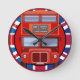 The clock did not take as long to arrive as I thought it might and was extremely well packaged. I didn't do the measurements so I didn't realize it is a little smaller than the average clock but that does not matter (just make sure you check if that's important to you).It is really nifty! It seems very solid and well made not flimsy at all. It has been going well and has kept good time in its few weeks on my wall. Nice product. Gets noticed too! Nicer in real life than the picture but true to the picture