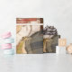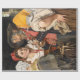 This design features a painting by the German artist Karl Gussow (1843–1907). It captures an affectionate moment between an elderly man and his cherished pet cat, while three women, perhaps family members, surround him. The painting exudes warmth, domesticity and the joy of simple shared moments. The elderly man, standing with a gentle yet joyful expression, holds the cat up near his face as if admiring his treasured companion. His expression exudes affection and delight, showcasing the cat as an important source of companionship in his life. The cat, content and relaxed, is portrayed with detailed tabby fur, adding a lifelike quality to its presence. The three women, also standing, surround the old man, observing his interaction with the cat with warmth, as if they are familiar with his deep fondness and love for the animal. Gussow's careful composition, with the old man and cat at the centre surrounded by the women, emphasizes the theme of love and connection. The painting celebrates the simple joys of life, particularly the companionship between humans and animals, while also capturing the supportive and light-hearted nature of familial relationships. The original work was painted by Karl Gussow in 1876.