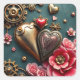 Beautiful pink flowers and gold, copper and bronze metal heart and gears steampunk stickers. Seal your envelopes when you have a card for romantic occasions like an anniversary, wedding invitation or a holidays like Valentine's Day.