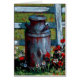 My painting of an old rustic milk can standing amidst some wild flowers, right next to an old white wooden fence.