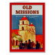 Vintage travel poster promoting the Old Missions and Santa Barbara in California, USA.