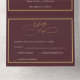 Set on a deep burgundy background with subtle gold accents and elegant serif typography, this all-in-one invitation blends traditional sophistication with modern convenience.