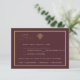 Elegant old money burgundy wedding response card with classic gold accents and timeless serif typography.