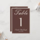Classy and elegant old money ivory and chocolate brown wedding table numbers. As you see it features a brown background with ivory script that match the whole suite.