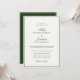 Refined, timeless, and effortlessly elegant, this wedding invitation features a rich old-money dark green paired with a soft ivory background. The clean typography and classic border design evoke understated luxury—perfect for couples drawn to heritage style, quiet sophistication, and enduring romance.