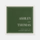 Refined, timeless, and effortlessly elegant, this wedding napkin features a rich old-money dark green paired with a soft ivory typography. The clean typography and classic border design evoke understated luxury—perfect for couples drawn to heritage style, quiet sophistication, and enduring romance.