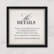 This old money inspired black and ivory square wedding details card blends timeless typography with modern convenience. The refined serif layout and elegant script heading are framed by a bold black border, creating a sophisticated black tie aesthetic.