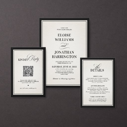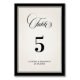This old money inspired black and ivory wedding table number card features refined serif typography with an elegant script heading, framed by a bold black border for a timeless and sophisticated presentation. The clean layout highlights the table number in classic black tie style, creating a polished and heirloom-inspired aesthetic.