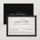 This old money inspired black and ivory RSVP card features refined serif typography, an elegant script header, and a coordinating black reverse side for a polished, formal presentation. The classic layout includes meal selection options and attendance confirmation while maintaining a timeless black tie aesthetic.