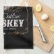 Old Moonshine Whiskey Label ADD PHOTO Family Name Tea Towel