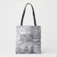 Black and white vintage maps and newspaper clippings print tote bag, perfect for any adventure!