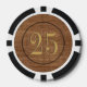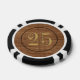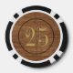 Old west saloon style wood-look $25 poker chips with customisable value and sides. Retro style numbers with stamped effect. Add your name or personalised text to create you own unique vintage playing chip. Perfect gift for the cowboy or riverboat gambling man on your list. Not made of real wood -- image is printed on ceramic. More unique masculine novelty gifts for men, poker players, casino gamblers, card sharks, executives available in store.