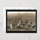 A reproduction of an old postcard of racehorses on their way to the start on the Rowley Mile course at Newmarket.