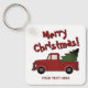 Old red chevy truck and Christmas tree custom keychain gift. Old vintage Chevy truck hauling a Christmas tree. Fun design for the holidays.