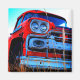 This magnet has an old red truck pictured on it.