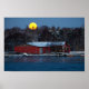 Old red wooden boathouse with full moon poster