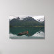 Canvas print of a landscape with an old rowboat in a lake with the reflection of the mountains in the still water, Hjelle, Norway.