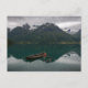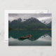Postcard of an old rowboat in a lake with the reflection of the mountains in the still water, Hjelle, Norway.