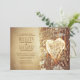 Old vintage background rustic engagement party invitation with tree trunk and carved love heart with your initials. Perfect invitation for rustic country celebration, or vintage inspired engagement party with tree motif.