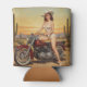 Old school Retro Pin-up girl on motorcycle Can Cooler