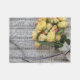 bouquet of fresh yellow roses wrapped in an old postcard, tied with a striped ribbon on an old music background