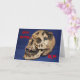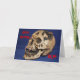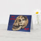 An Old Skull with a Blue back ground that's on a Birthday Card.