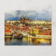 Beautiful view on old town Prague from Bridge Tower - vintage painted style illustration