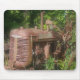 An old vintage tractor tangled in a bush of weeds photo mousepad