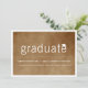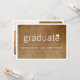 A modern minimalist 2-in-1 graduation announcement photo card and grad party invitation design featuring simple bold typography with a mortar board / graduation cap accent on a vintage brown old paper textured background layer which can be removed and personalised with any flat custom colour of your choice.