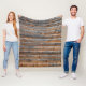 Old wall of wooden planks with cracks. Beam made o Fleece Blanket