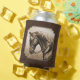 Beautifully painted portrait of a golden sorrel quarter horse with flaxen mane sporting a fancy western pleasure show bridle and saddle. Realistic artwork created from an original oil painting by equine and wildlife artist Crista S. Forest, then digitally edited to give it an aged or old photo effect in warm sepia tones, just right for decorating your rustic or ranch style country home. Accented with a matching brown background.