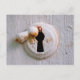 An old rusty keyhole on a white painted wooden door. A symbol of a secret or something private. Matching stamp: