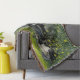 A quality printed throw has its advantages. This is a much finer weave throw than its loopier cousins, and though lighter, it is worth the investment for custom room accessorizing. The back is much prettier than the typical brown, and the fringe on the long sides very vivid, the selvage nicely done. Before photographing, I washed the throw in cold water, delicate, with a thicker woven throw the same size. On tumble dry low, this throw was dry in half the time as the other. This is a very practical quality if you use throws for furniture covers or to wrap up in frequently. The sleekness of the fabric makes it a great layer for accenting or protecting without the feeling of sitting on too much stuff. Perfect for napping or when you feel a light chill coming on. The color printing is beautiful and on this fabric, matched the design and color of my Photoshop image. This is an advantage for blending room fabrics and colors. The fringe on the short sides prints the colors from the design image and therefore varies from the side fringe. I streaked a white fractal line through the plaid pattern to give the illusion of weaving. This printed as crisp as an illusory thread, and put some white in the short side fringe, showing another advantage of print vs loomed- for artistic purposes, line lines, detail, and color integrity can be planned and preserved. My loomed throws have color limitations and more of a needlepoint texture. Print throws reproduce an exact image. The throw felt a little stiff straight out of the package, but this went away in the first delicate wash. Of course I searched the wash water for ink or bleeding and there was none.