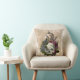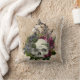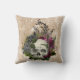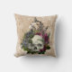 Old World Burgundy Pink Floral Skull on Gold Cushion