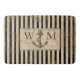 This nautical monogram bathmat features a black and beige striped background with a black anchor in the centre and world map overlay. Personalise the monogram with your own initials. Designed by world renowned artist Tim Coffey.