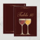 Old World Red & White Wine Glass Table Number Card