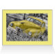 Old yellow car photograph with black and white field. Tags: yellow, car, auto, automobile, "black and white", colour, photograph, photo, antique, vintage, black, white, "gifts for him", field, old, artistic,