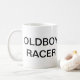 A mug with a print of a Ford Fiesta XR2 on one side and the legend 'OLDBOY RACER' on the other. The image is a reproduction of a painting from Sid Fox's 'Modern Classics Collection'.
