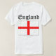 This classic t-shirt shows the English flag of St George in patriotic red and white, with the name "England" written above in black 'olde english' lettering. Ideal for St George's Day or the football world cup!