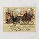 Victorian sisters riding in a horse sleigh with a dog running besides them in the snow. Nostalgic vintage christmas illustration by Mary Evans.