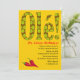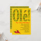 A sunny yellow background holds the word "Ole!" in a green floral pattern which is repeated on the back. The red hot chilli peppers embellish the bottom of the invitation. Perfect for any Mexican theme celebration.